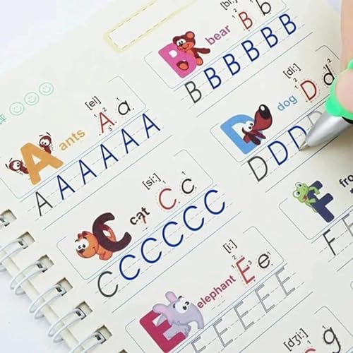【MAGIC BOOK FOR KIDS】It’s important for them to go to preschool education which is easier to correct the gesture and writing method of holding the pen. 【HANDWRITING PRACTICE BOOK FOR KIDS】: During practice activities, kids can use their magic pencils to ABCD follow paths and draw different shapes. 【REUSABLE PRACTICE BOOK】:The magic reusable copybook has three-dimensional groove design, standard writing format. craft materials. 【CALLIGRAPHY BOOK FOR BEGINNER PRACTICE】:During these activities, kids will use the pen to follow paths and draw different shapes, so they build their fine motor skills. that will engage their minds and writing skills. Hand writing practice books kids 【FOR AGE GROUP 2+ YEARS】