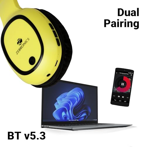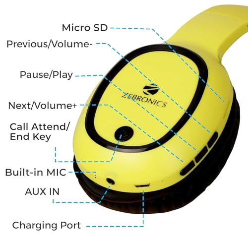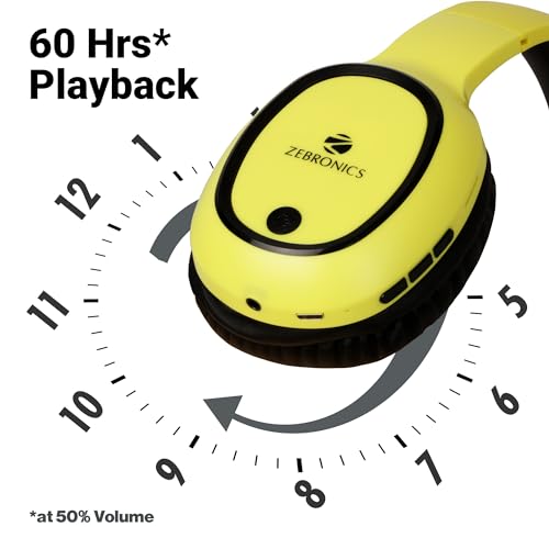 Specification: ZEBRONICS Thunder Bluetooth Wireless On Ear Headphone FM, mSD, 60hrs Playback with Mic (Neon Yellow)
