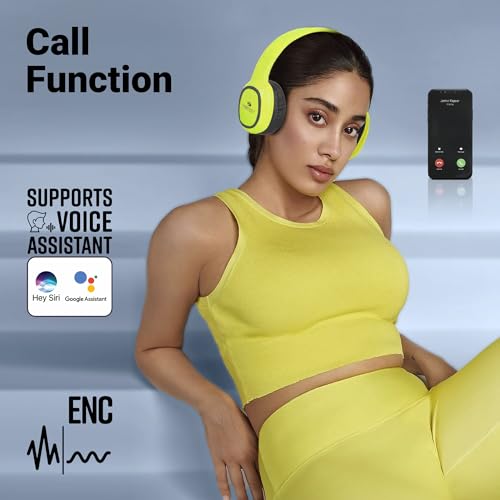 ZEBRONICS Thunder Bluetooth Wireless On Ear Headphone FM, mSD, 60hrs Playback with Mic (Neon Yellow)