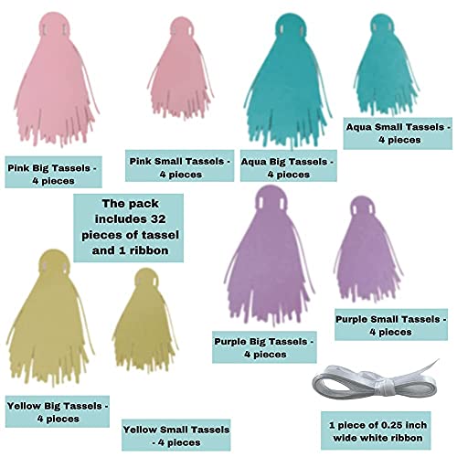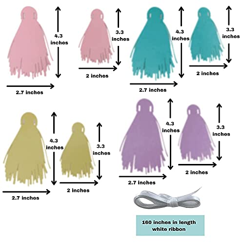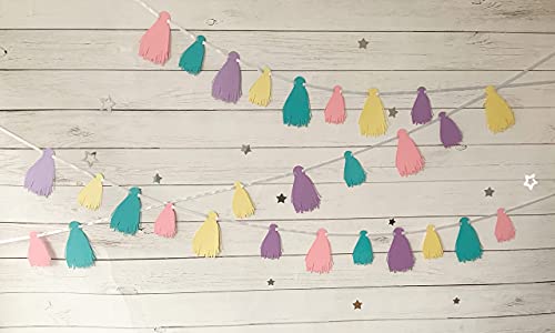 Specification: Pinfliers Pastel Theme Party Decoration Paper Tassel Bunting, 32 Pieces, Pink, Purple, Yellow and Aqua, 75 inch in Length
