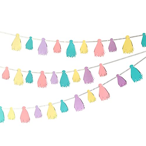 Pinfliers Pastel Theme Party Decoration Paper Tassel Bunting, 32 Pieces, Pink, Purple, Yellow and Aqua, 75 inch in Length