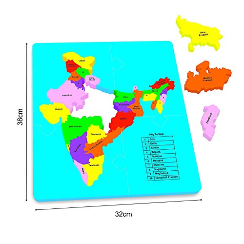 Specification: toyshine educational jigsaw puzzle range for kids (eva indian map with information guide in the pack) – made in india- Multi color