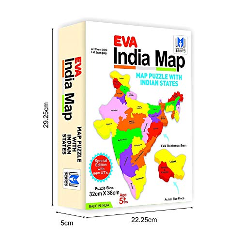 MADE OF EVA FOAM All the pieces are made of Eva foam and these shapes are cut in the state shapes of the country , that can be snugly fit to form the Indian map, and its bright colors and interesting shapes help entice kids to put one together.